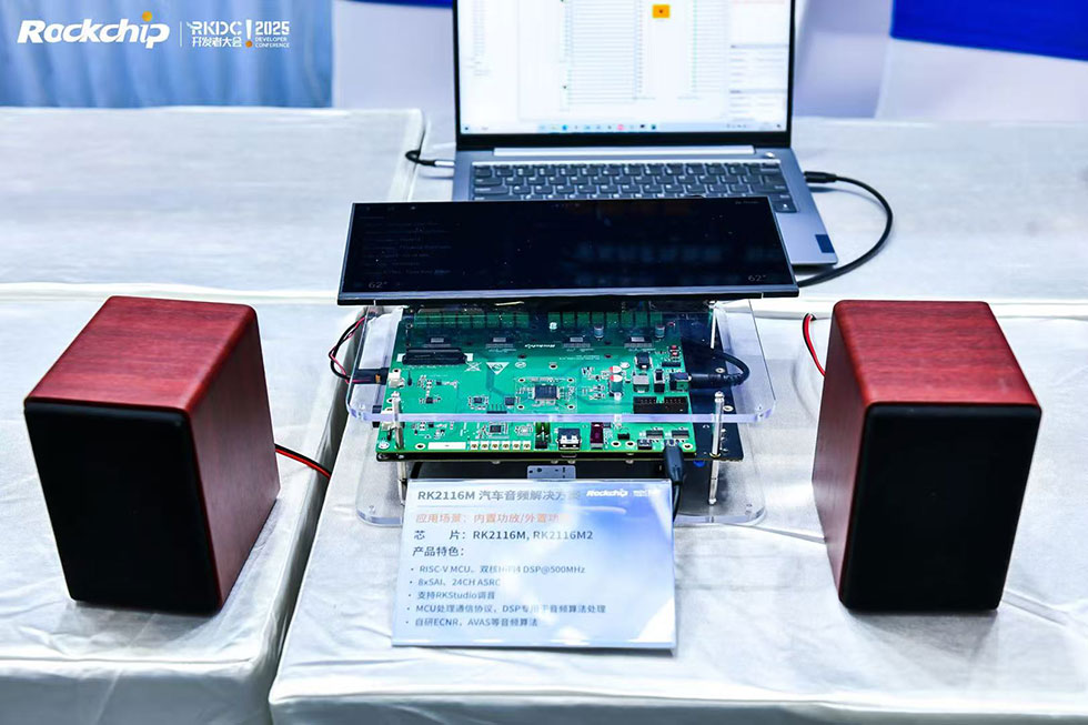 會上發(fā)布了最新一代DSP-RK2116M,其在RK2118M基礎(chǔ)上進行了架構(gòu)和IP上的精簡,同時新增4TX4RX的Audio Codec,并且軟件高度兼容RK2118M,可無縫移植。