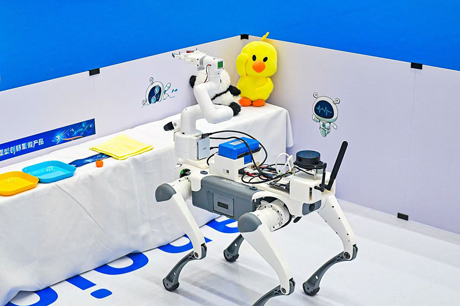 • 機器狗+機械臂輕量級服務機器人:基于RK3588運行ROS2實現機械臂與機器狗的控制,使用端側RK1820部署的Qwen LLM與VLM進行任務的規劃與編排,具備自主導航與精準操作的一體化能力,支持復雜環境下實現物體精準抓取與搬運任務,適用于巡檢、安防等工業場景