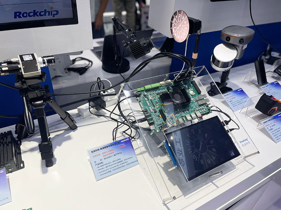 • 工業視覺:展出了涵蓋工業相機、掃碼器、3D打印機、測繪儀器、AI監測等多形態終端產品,重磅推出基于RK3576平臺的大語言+圖像多模態大模型創新方案。該方案成功突破傳統視覺模型的局限,在邊緣側實現了融合語境理解與視覺感知的智能解析能力。通過輕量化模型優化與NPU加速技術,實現了較高實時推理速度和圖像識別準確率,廣泛應用于智能制造、智慧安防等場景